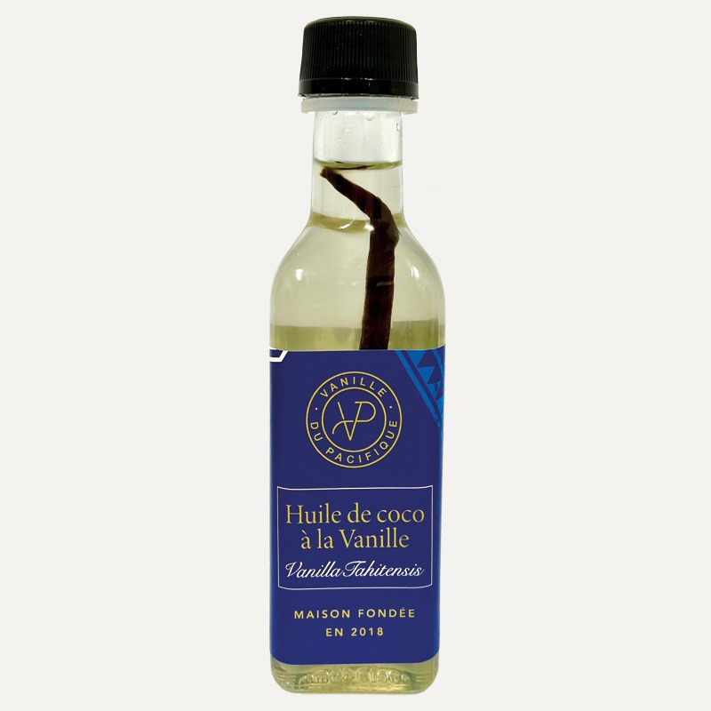 Huile de coco infusée à la vanille de Tahiti. Un produit Vanille du Pacifique.